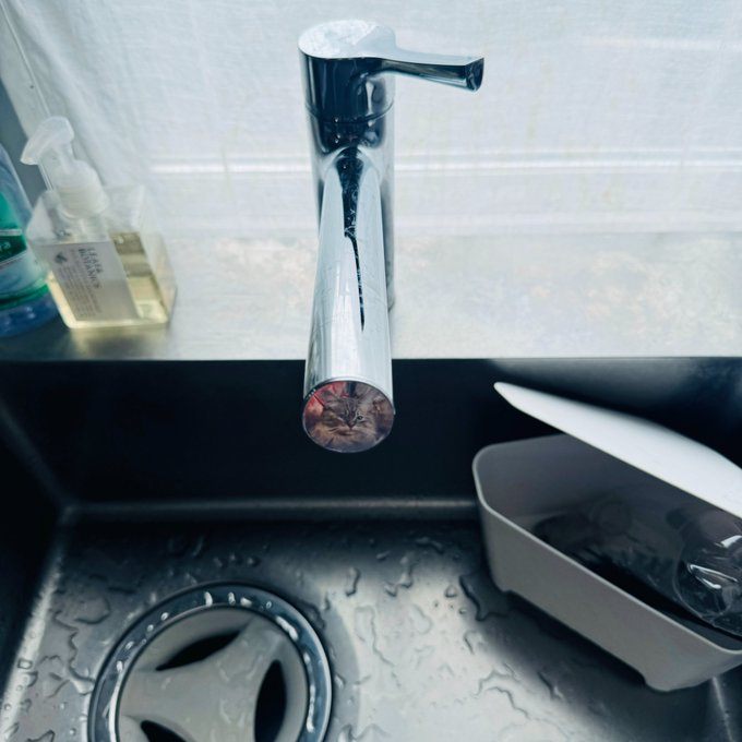 蛇口になにか! ネコ!!!!!!!??? って思ったら、自分が着てるTシャツが映っていただけだった。ちょっとビビッた。奇しくも世界猫の日だった。