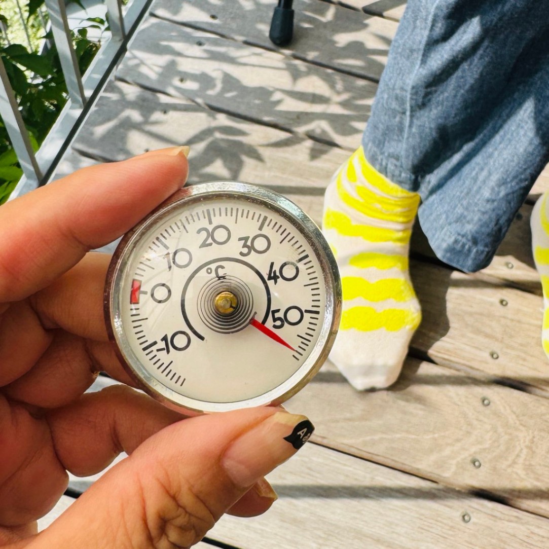 存在をすっかり忘れていたけど、家にある海外製の温度計を見たら60度まで数字があった。壁からムリヤリ剥がしてはちみせに持ってきたところ以上数値を計測。ラオスでも経験のなかった59度だ。しかも昨日よりぜんぜん暑くない。……ということは、昨日は60度超えていたのではないか?
