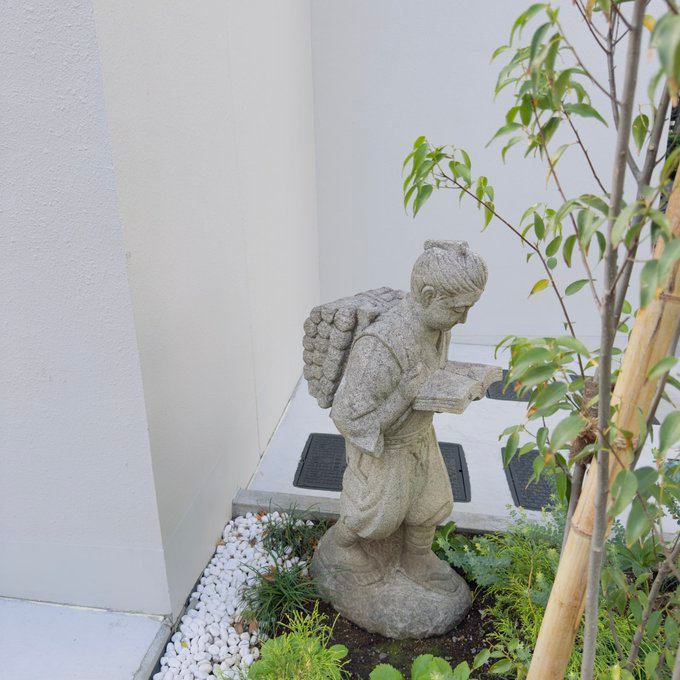 町医者が入った新医療モールのビルに二宮金次郎像が突如現れた。甲州街道で信号待ちをしていたら斜め向こうにそれらしき物体が見えてたので「うそでしょ!?」って思いながら即座に進路を変えて近づいたらやっぱ二宮氏だった。