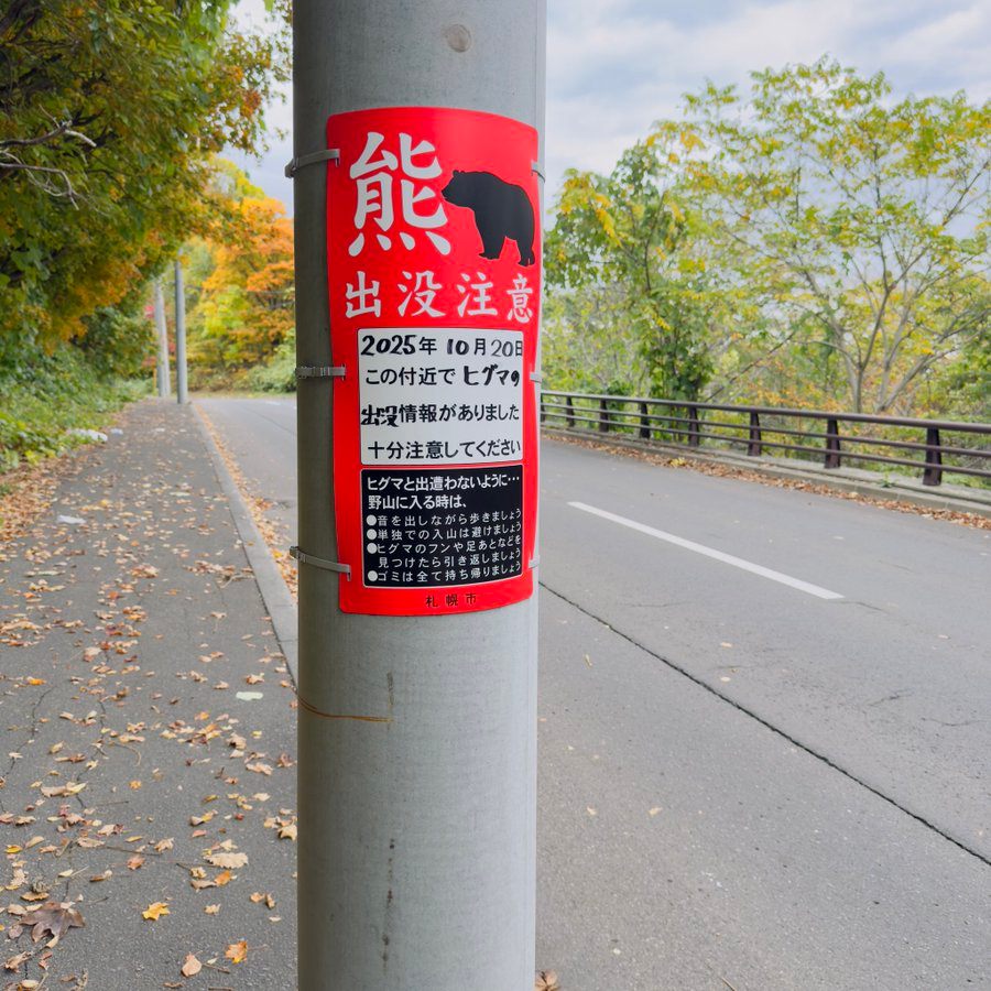 札幌は都会すぎて東京っぽかったしビビッていた寒さも今ひとつピンとこなかったし「北海道だーーーっ!」という感情が湧かなかったし田中邦衛もいなかった。けれども今思えば、大倉山ジャンプ競技場に続く道を歩いている時が唯一北海道だった。熊出没の張り紙はあらゆる場所で目にしたけれど、こ、これは……!