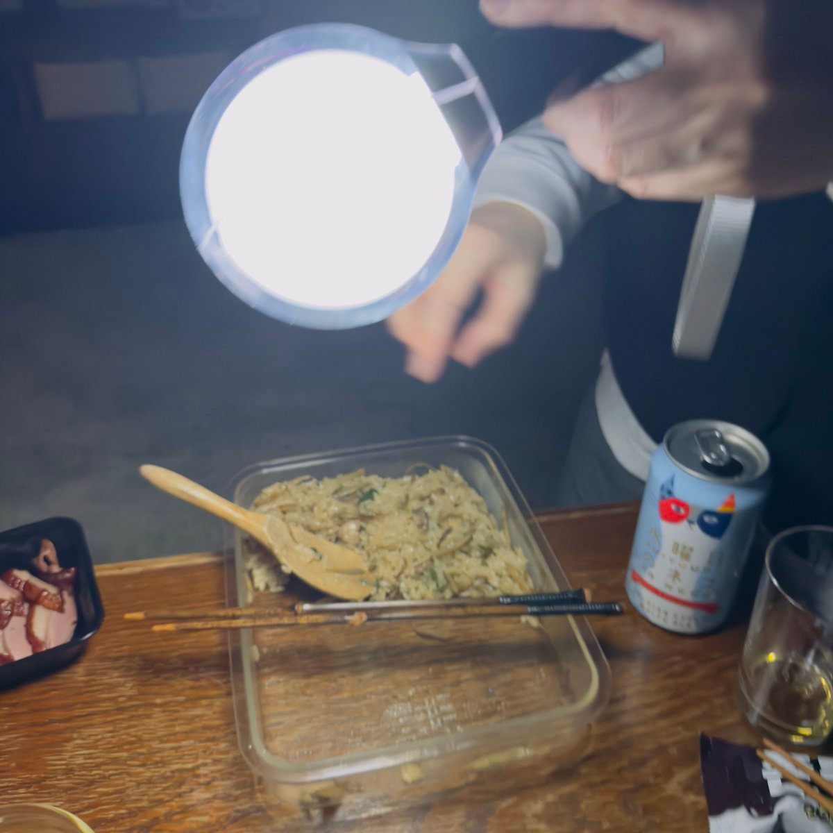 とはいえアミボム(ライブとかで使うペンライトみたいなもん)は、暗くした部屋の中でごはんを食べたいなおの懐中電灯になっていた。